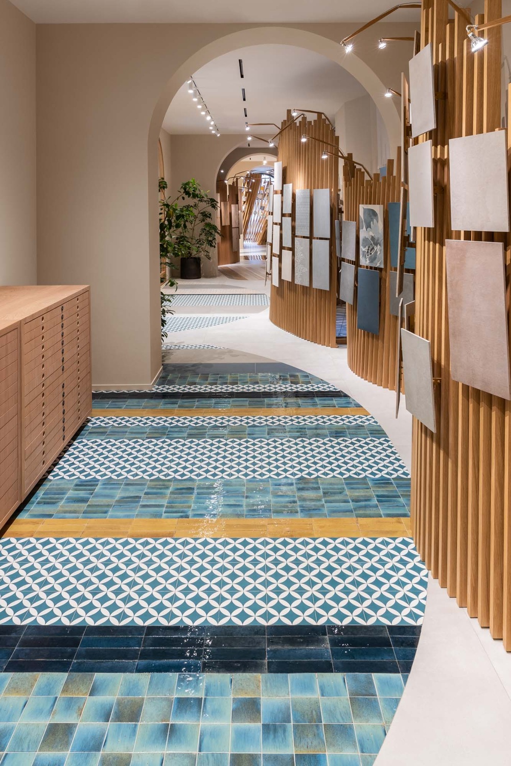 Ceramiche Ragno, a historic brand in the Italian ceramics industry, part of Marazzi group, opens its first flagshipshowroom in Milan, designed by Benedetta Tagliabue – EMBT. The 400-m² space, with its large arched windows overlooking Via Marco Polo in the iconic Porta Nuova district, has been interpreted by EMBT Architects as a kaleidoscope of colours, textures and patterns that tell a surprising story of the brand’s history and technical and craftsmanship skills and all the expressive potential of ceramics.